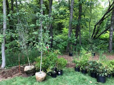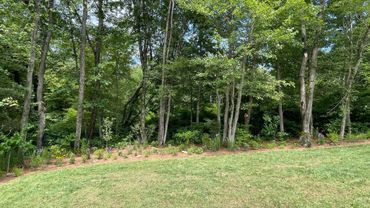 AFTER: We planted ten 7-8' arborvitaes for a back screen, several Cornus Florida (pink dogwoods), cercis canadensis (eastern redbuds), amelanchier, bottlebrush buckeye, viburnums, spicebush, northern bush honeysuckle, rhododendron maximum, bayberry and several other native shrubs and trees. As well, of course, hundreds of native perennials that will give flowers from spring through fall.