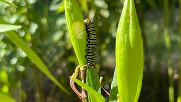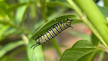 We planted a variety of 95% native plants that will be a magnet for bees, butterflies and hummingbirds. In fact, one of the milkweed already have a monarch caterpillar munching away!